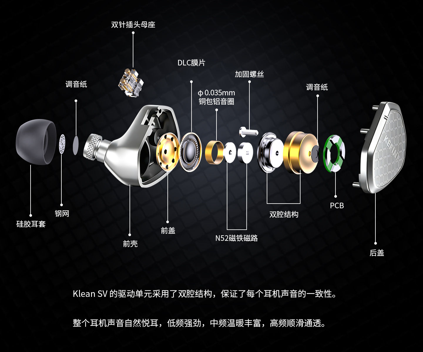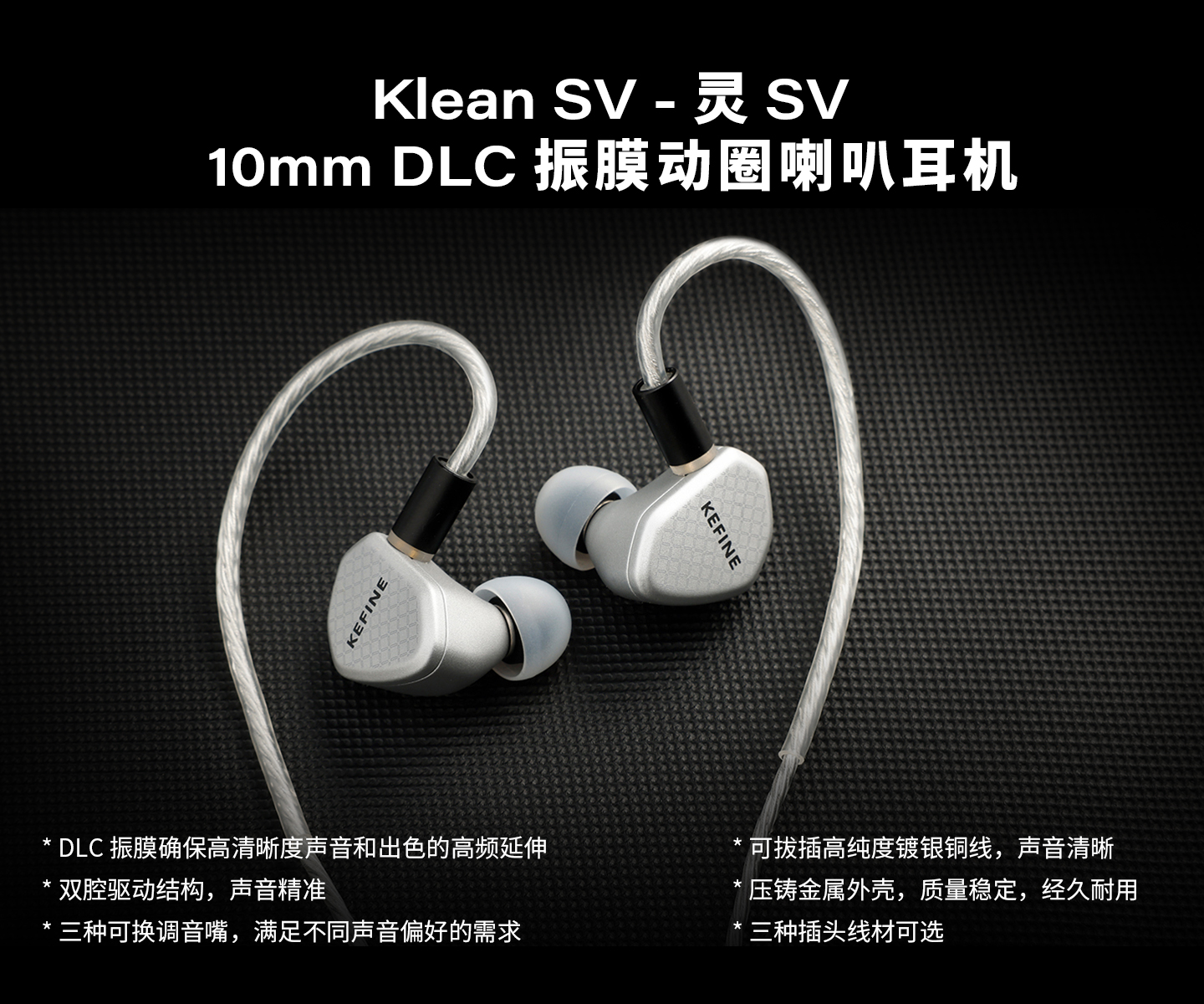 Klean SV - 10mm DLC 振膜动圈喇叭耳机
