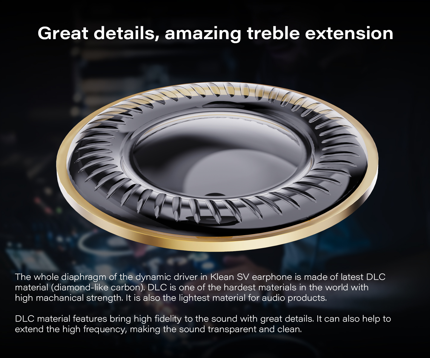 * High clarity sound with great extension made by DLC diaphragm