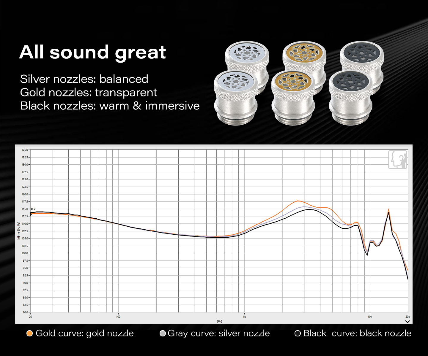 * Interchangeable nozzles for the needs of different sound preference