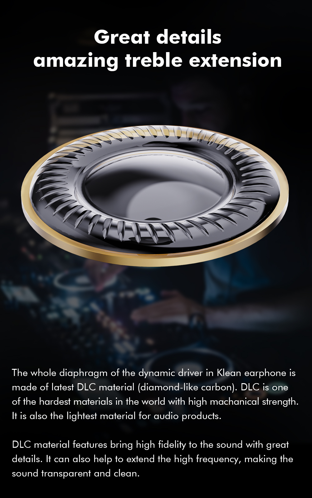 1. High clarity sound with great extension made by DLC diaphragm