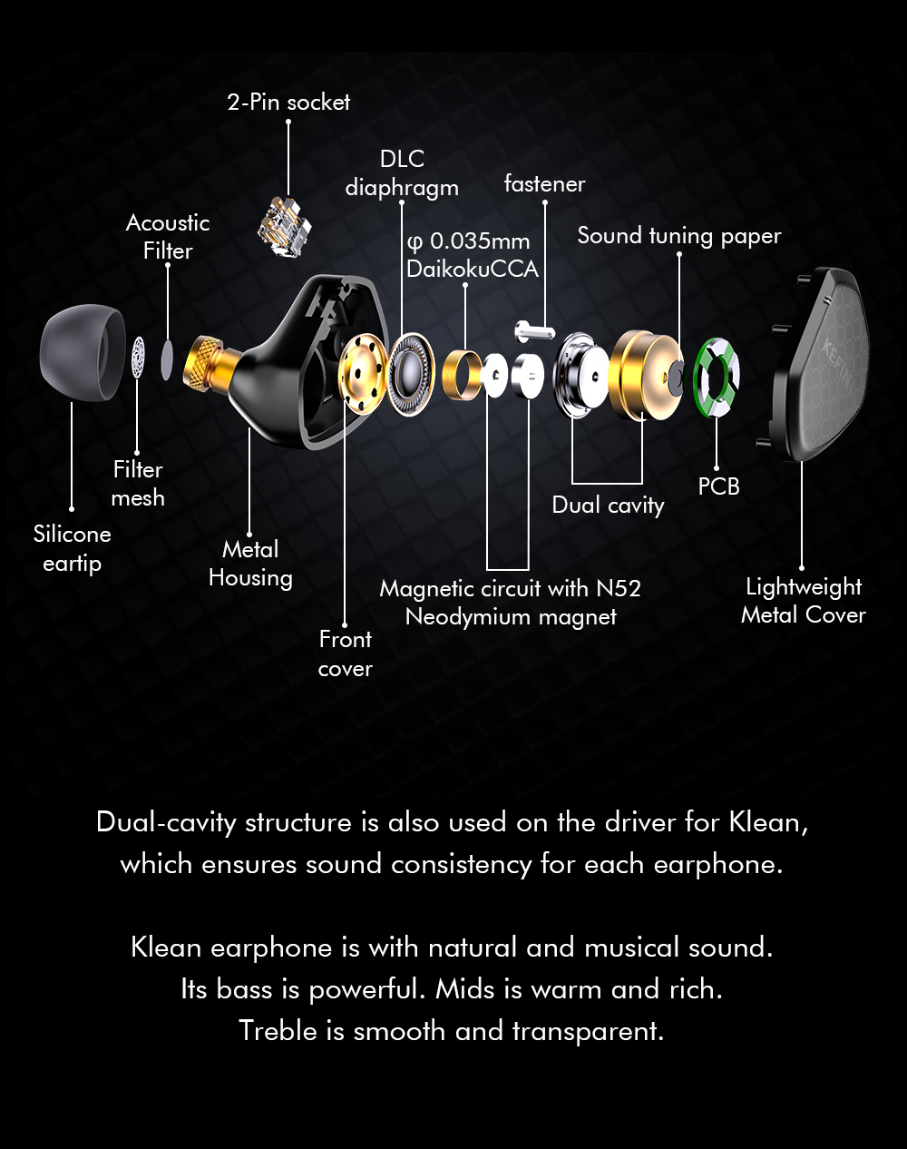 Klean - 10mm DLC diaphragm dynamic driver earphone